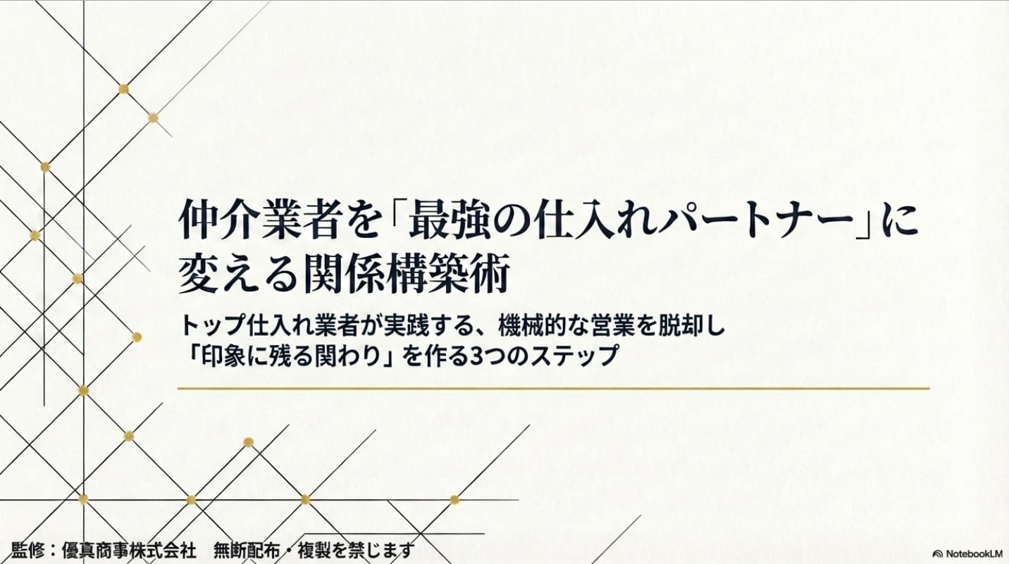 仲介業者を「最強の仕入れパートナー」に変える関係構築術
