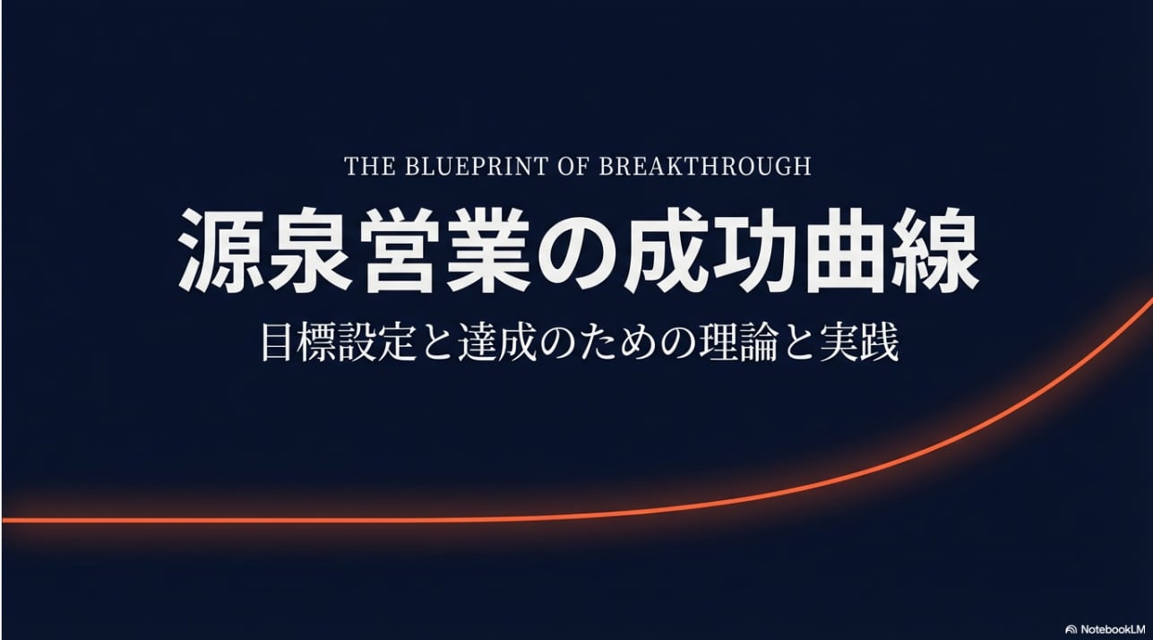 本資料は、自らマーケットを切り拓き、紹介やリピートを連鎖させる「源泉営業」において、圧倒的な成果を出すための理論と実践を体系化したものです。特に、日本を代表する経営コンサルタントであった故石原明先生が提唱された「成功曲線」や「行動すれば次の現実」というメソッドは、源泉営業の本質と驚くほど高い親和性を持っています。